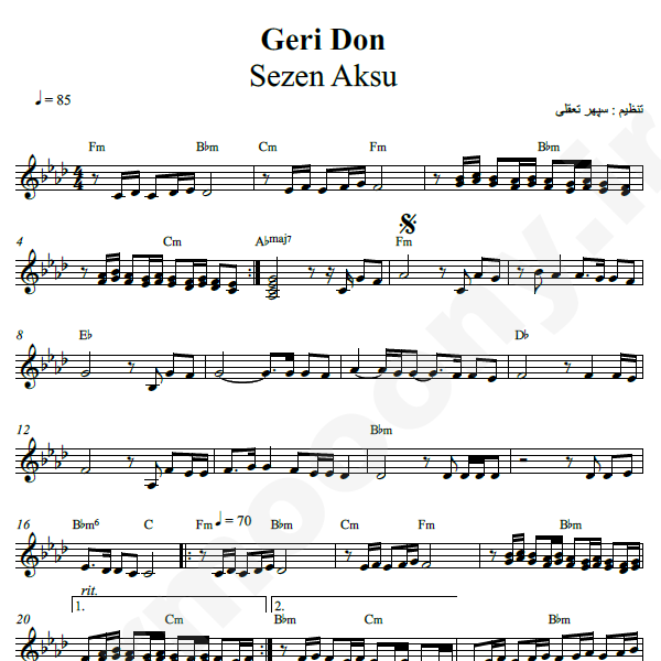 نت کیبورد : گری دون geri don آهنگ ترکی