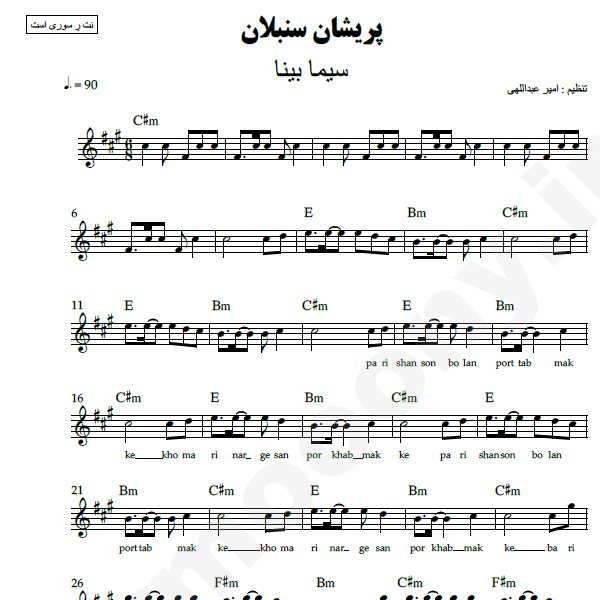 نت کیبورد ” پریشان سنبلان ” –  سیما بینا