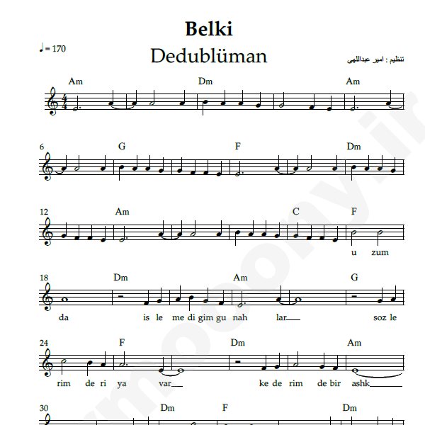 نت کیبورد : بلکی Belki آهنگ ترکی