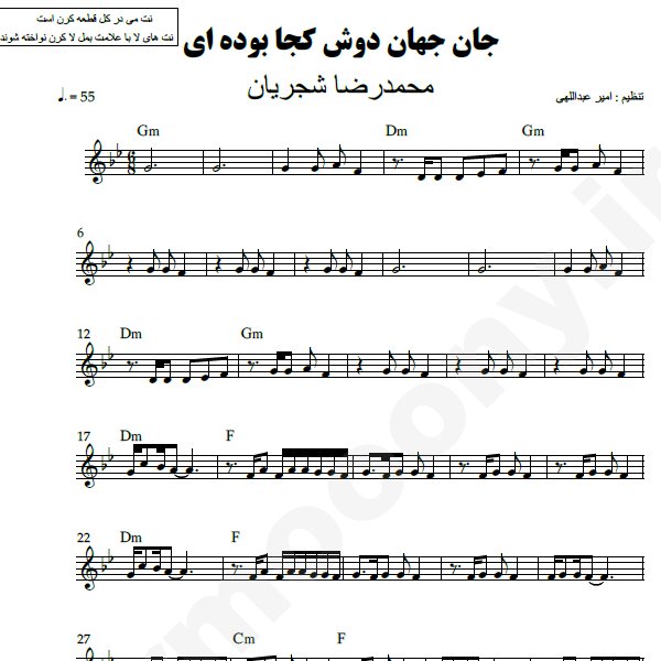 نت کیبورد ” جان جهان ” –  محمدرضا شجریان