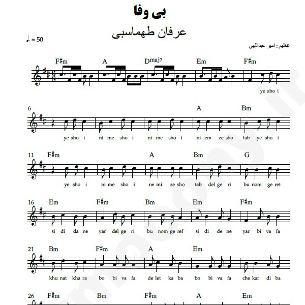 نت کیبورد ” بی وفا ” –  عرفان طهماسبی