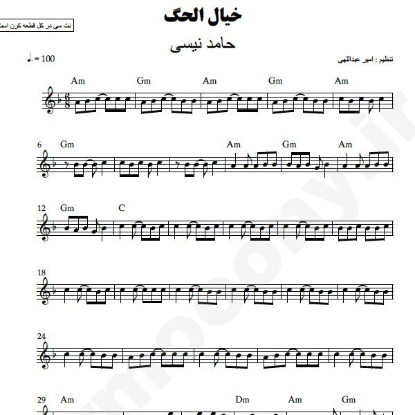 نت کیبورد : خیال الحگخواننده / آهنگساز : حامد نیسی