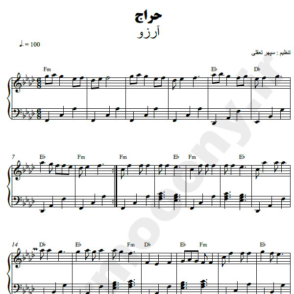 نت پیانو ”  حراج ” – آرزو