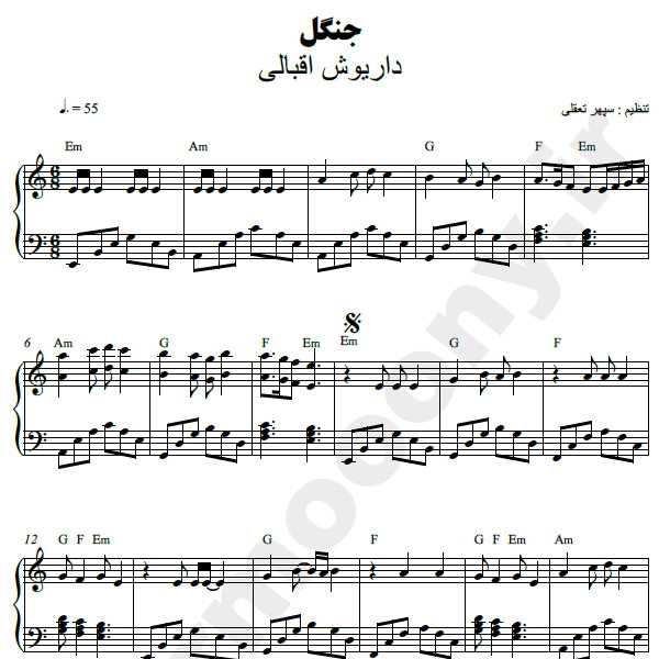 نت پیانو ”  جنگل ” – داریوش