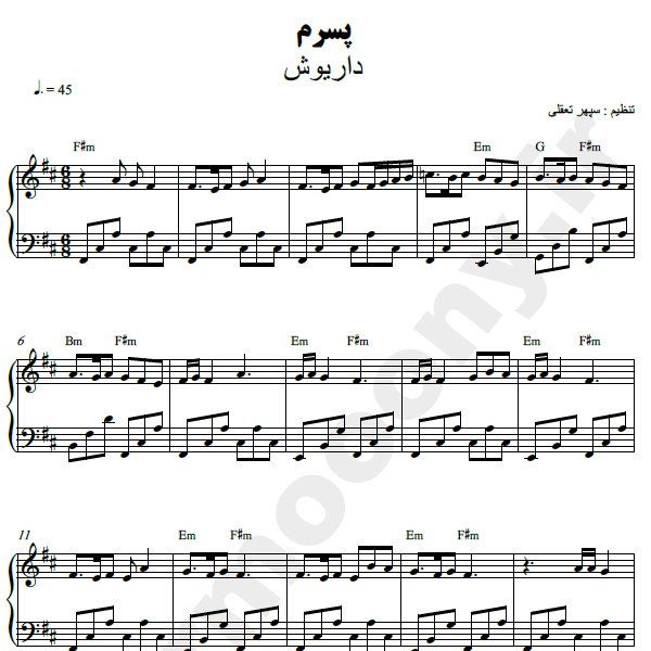 نت پیانو ”  پسرم ” – داریوش