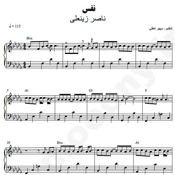 نت پیانو ” نفس ” –  ناصر زینعلی