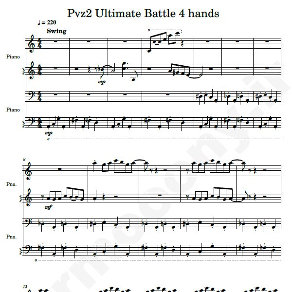 نت پیانو چهاردستی : Pvz2 Modern Day_Ultimate Battle_Peter McConnell