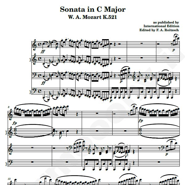 نت پیانو چهاردستی ” Sonata In C Major K.521 ” –  دوئت پیانو