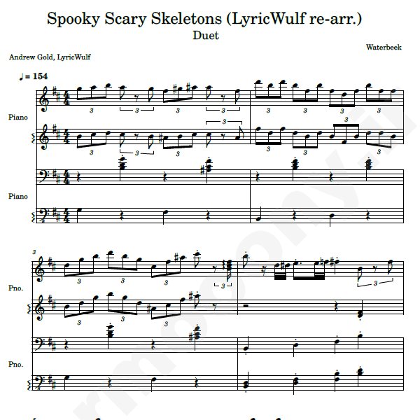 نت پیانو چهاردستی ” Spooky Scary Skeletons ” –  دوئت پیانو