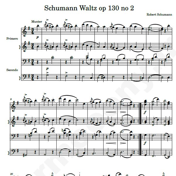 نت پیانو چهاردستی : WaltzWalzer G major from Robert Schumanns Kinderball Op. 130, No. 2