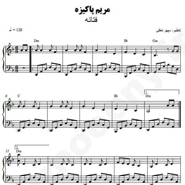نت پیانو : مریم پاکیزه