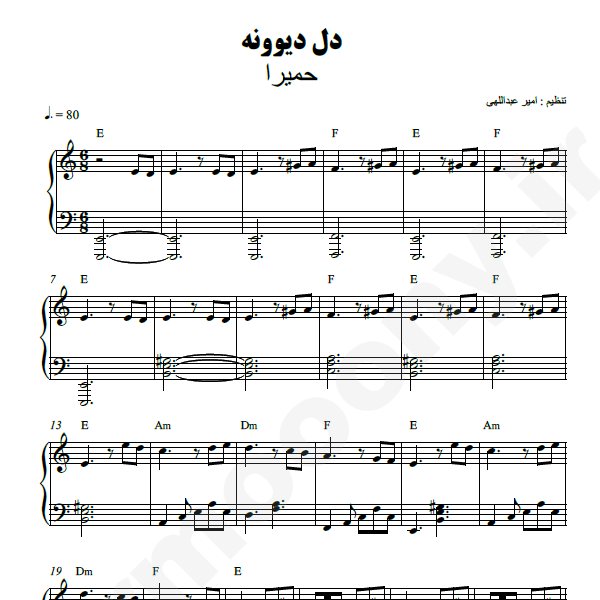 نت پیانو ” دل دیوونه ” –  حمیرا