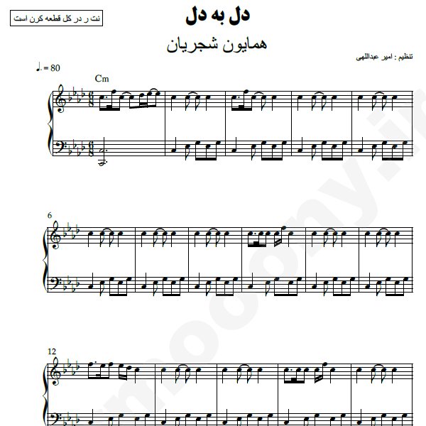 نت پیانو ” دل به دل ” –  همایون شجریان
