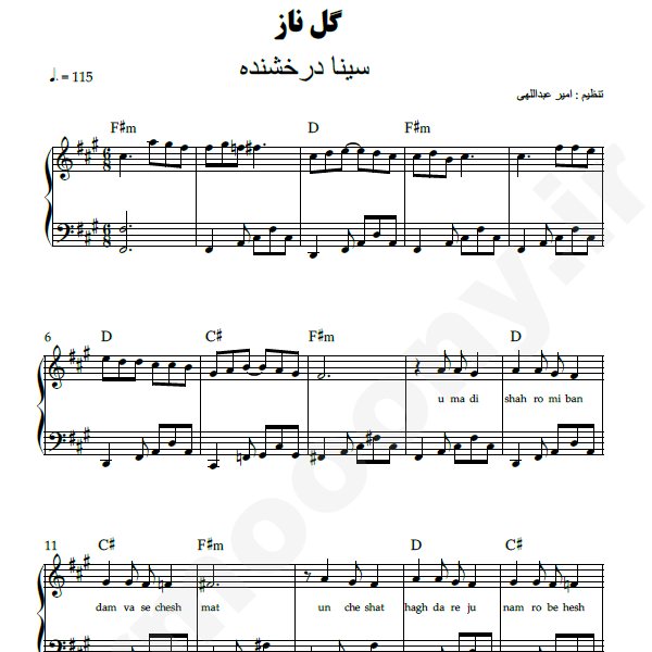 نت پیانو ” گل ناز ” –  سینا درخشنده