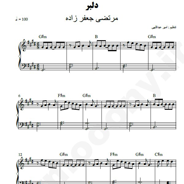 نت پیانو ” دلبر ” –  مرتضی جعفرزاده
