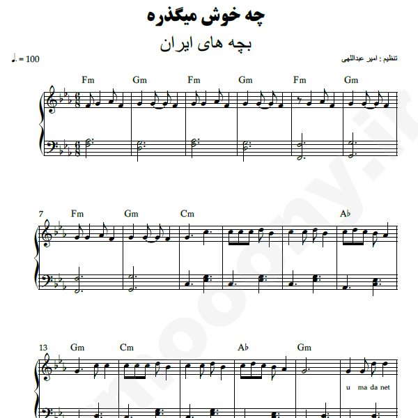 نت پیانو ” چه خوش میگذره ” –  بچه های ایران