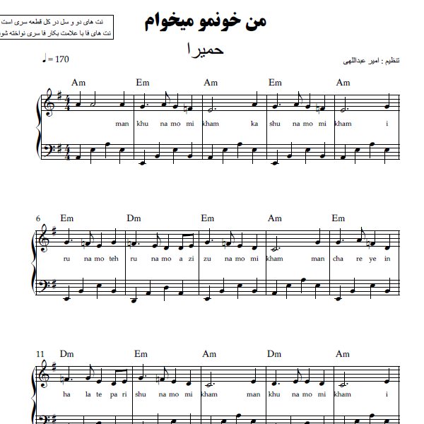 نت پیانو ” خونمو میخوام ” –  حمیرا