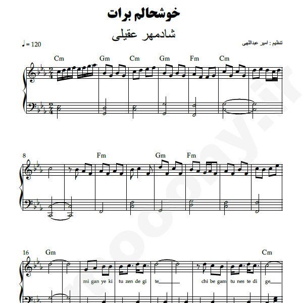نت پیانو ” خوشحالم برات ” –  شادمهر عقیلی