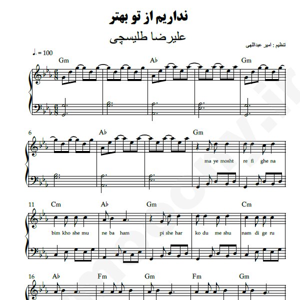 نت پیانو : نداریم از تو بهتر