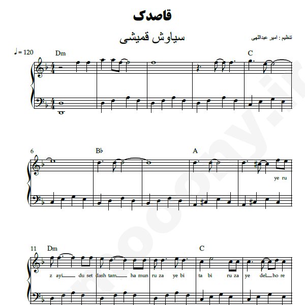 نت پیانو ” قاصدک ” –  سیاوش قمیشی